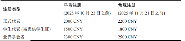 本次會(huì)議設(shè)有早鳥(niǎo)注冊(cè)優(yōu)惠,請(qǐng)于 2025 年 10 月 23 日前完成注冊(cè)以享受優(yōu)惠價(jià)格