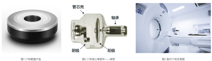 醫(yī)療CT機靶盤是CT機球管的核心零部件之一,主要由鎢錸/鉬合金/石墨三層結(jié)構(gòu)組成。公司攻破了CT機核心部件國產(chǎn)化最后難關(guān)之一,獨創(chuàng)的靶盤梯度燒結(jié)技術(shù),完善的生產(chǎn)設(shè)施設(shè)備建設(shè),覆蓋高端全系列產(chǎn)品(直徑140-240mm),各項指標達到或超過國際領(lǐng)先水平。