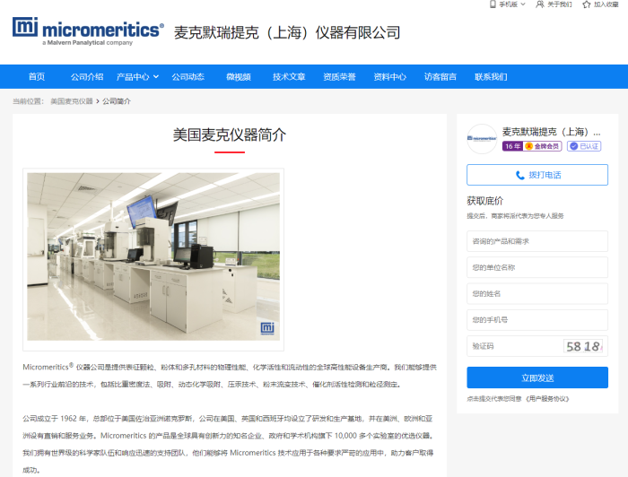麥克默瑞提克(上海)儀器有限公司是全球領(lǐng)先的粉體表征儀器制造商,專注于比表面積及孔隙度分析儀、真密度儀、化學(xué)吸附儀等高端儀器的研發(fā)、生產(chǎn)與銷售。