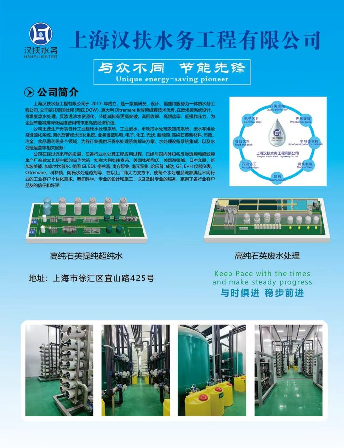 上海漢扶水務(wù)工程有限公司于 2017 年成立,是一家集研發(fā)、設(shè)計、銷售和服務(wù)為一體的水務(wù)工程公司,公司依托美國杜邦(陶氏 DOW),意大利 Oltremare 世界頂級膜技術(shù)優(yōu)勢,在反滲透系統(tǒng)設(shè)計、高難度廢水處理、反滲透濃水資源化,節(jié)能減排有更高突破。高回收率、高脫鹽率、低操作壓力、為企業(yè)節(jié)能減排降低運維費用帶來更高的經(jīng)濟價值。