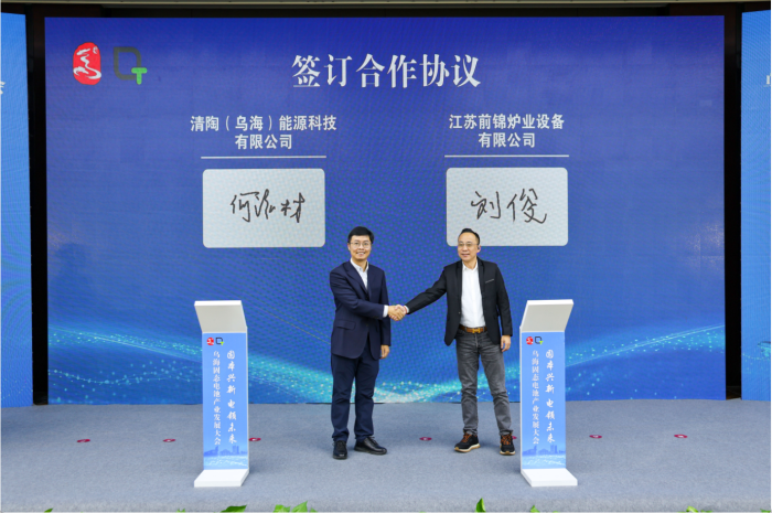 會(huì)上,清陶(烏海)能源科技有限公司(簡(jiǎn)稱:烏海清陶)與江蘇前錦爐業(yè)設(shè)備有限公司簽訂合作協(xié)議,江蘇前錦爐業(yè)將為清陶能源在烏海及全國(guó)的產(chǎn)能擴(kuò)張,提供高性能、定制化的燒結(jié)解決方案,確保核心材料批次穩(wěn)定、品質(zhì)優(yōu)異。