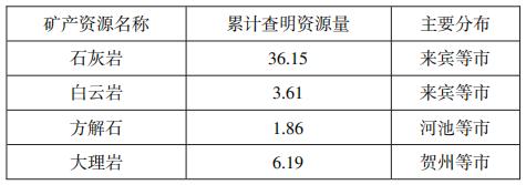 廣西主要碳酸鈣礦產(chǎn)資源儲量情況及分布 單位:億噸