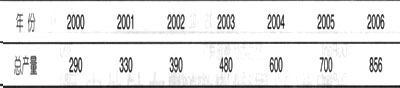 根據(jù)國家化工行業(yè)生產(chǎn)力促進中心鈦白分中心對全國57個鈦白粉生產(chǎn)商的62家企業(yè)進行統(tǒng)計,2006年全年累計生產(chǎn)鈦白粉855621t,比2005年的700kt凈增156kt,創(chuàng)歷史上年度增長最高記錄。其中金紅石型307330t,銳鈦型.49086lf,非顏料級57430t。其中產(chǎn)銷量達40kt以卜的生產(chǎn)商有4個,產(chǎn)量達40kt以上的有3個,產(chǎn)量達30kt以上的生產(chǎn)商有7 個,20kt以上的有12個,10kt以上的有32個,其余生產(chǎn)商的產(chǎn)量不足10kt,因各種具體情況,有的甚至不足lkt。山東東佳集團的全年鈦白粉總產(chǎn)量高達70kt,,遠遠領(lǐng)先于其它生產(chǎn)商,連續(xù)3年高居行業(yè)第一。據(jù)專家估計,2007年我國的鈦白粉產(chǎn)量極有可能突破1000kt/a。近幾年我國鈦白粉產(chǎn)量見表2。