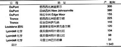 截止到2006年3月份,在美國本上鈦白粉的生產(chǎn)能力己達1543kt/a,2006年美國生產(chǎn)商及其產(chǎn)能詳見表1。