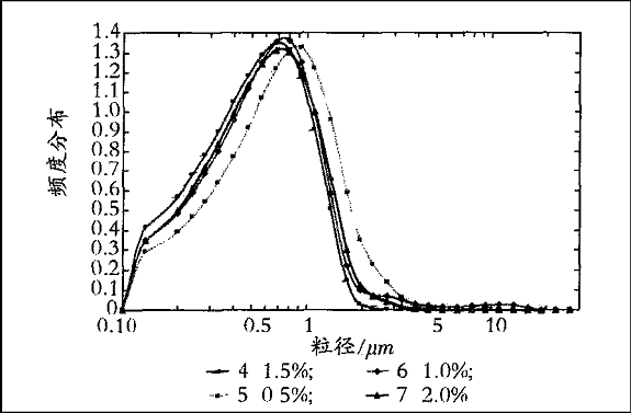 本文所述實例采用SYMPATECHELOS/OASIS德國新帕泰克干濕二合一激光粒度儀測量顆粒的粒度及粒度分布。是基于激光衍射的測試原理,測量范圍0.1~875μm。對粉末狀試樣,選用干法直接測試;對乳化液和懸浮液等液態(tài)試樣,選用濕法直接測試試樣中顆粒的最原始狀態(tài)的粒度及粒度分布。