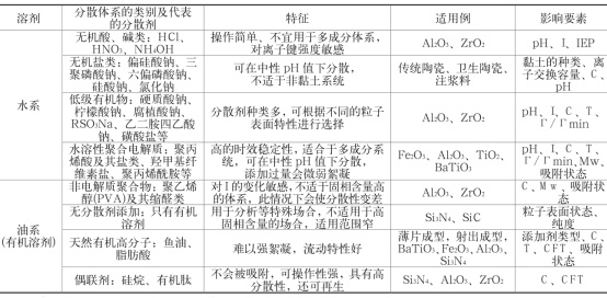(3)添加分散劑還有粘結(jié)或增加坯體強(qiáng)度作用,這些都對(duì)提高陶瓷制品的性能和降低制備成本起著重要的作用。