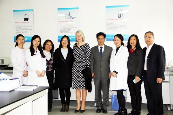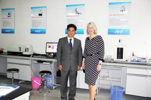 隨后他們來到歐美克測試室參觀各種原理的粒度檢測儀器,這里有應(yīng)用光散射原理的激光粒度儀,還有電阻法(庫爾特)原理的顆粒計(jì)數(shù)器及圖像法的顆粒圖像處理儀。還親自觀摩了代表國內(nèi)頂級測試水平的TopSizer激光粒度分析儀及全新一代干濕二合一激光粒度儀LS-909的測試過程。他們?yōu)闅W美克公司能研發(fā)出如此極具競爭力的粒度儀產(chǎn)品表示了高度贊賞。