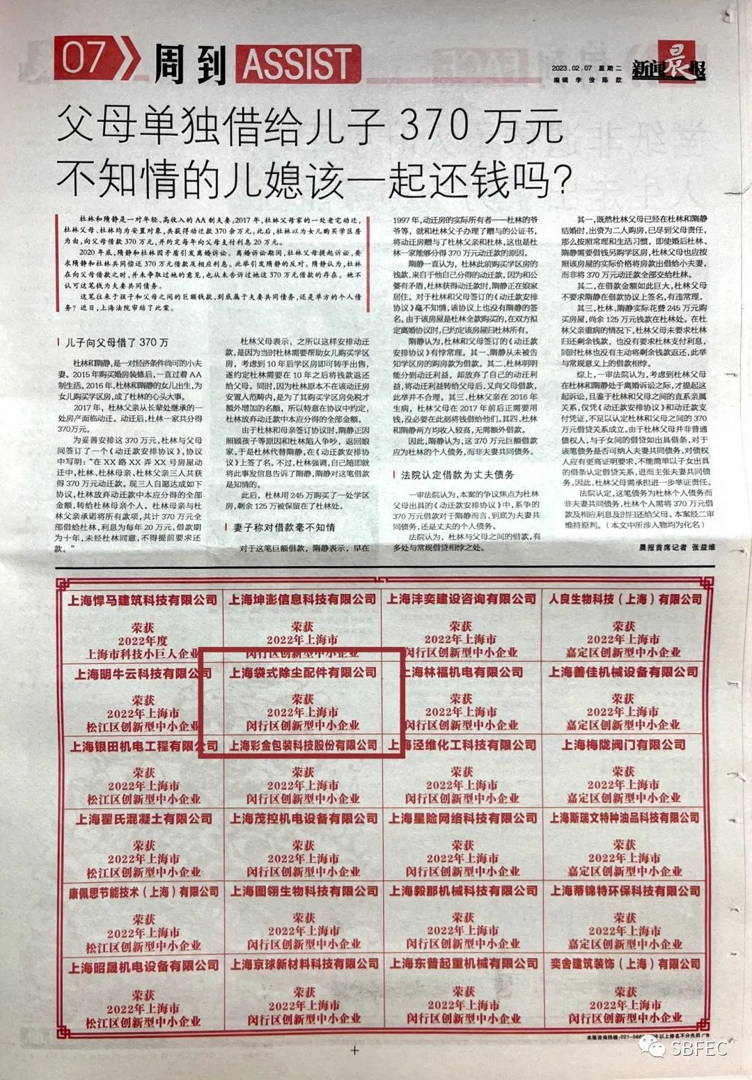 根據《上海市優(yōu)質中小企業(yè)梯度培育管理實施細則》要求,上海市經濟和信息化委員會開展了2022年創(chuàng)新型中小企業(yè)評價工作,上海袋式除塵配件有限公司獲此殊榮,并刊登于《新聞晨報》榮譽專欄。
