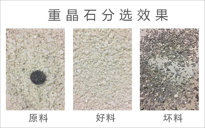 很多非金屬原礦,夾雜很多伴生脈石,可通過色選,去除其他雜石,提高非金屬礦原料品質(zhì)。