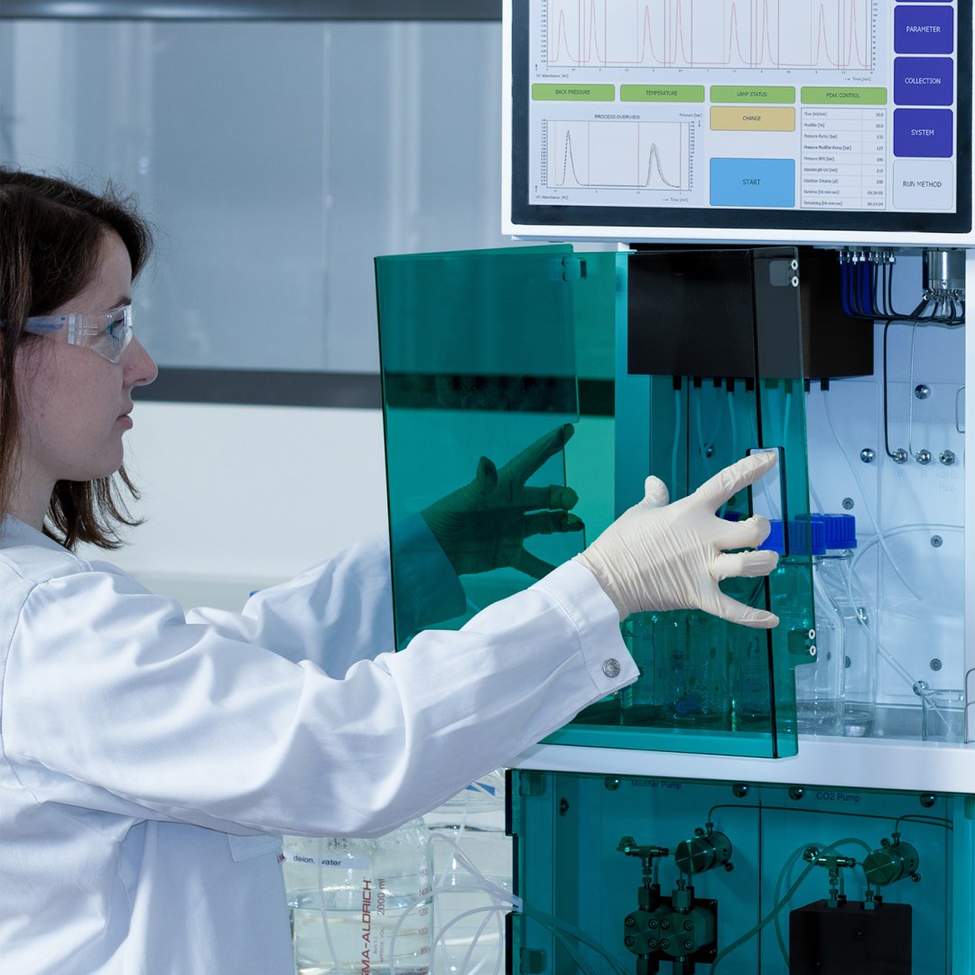 BUCHI 制備型超臨界色譜系統(tǒng)可以滿足各種分離需求,可以連接內(nèi)徑 4-50mm,長度 150-800mm 的 HPLC 色譜柱,具有處理毫克至克范圍樣品的能力。為了檢測各種不同的化合物,除了標準配置的紫外檢測器,還可以額外配置蒸發(fā)光散射檢測器 (ELSD) 和質(zhì)譜儀 (MS)。此外,在等度的溶劑條件下,還支持疊層進樣,配合無容積限制的餾分收集器,可以全自動分離大量樣品。