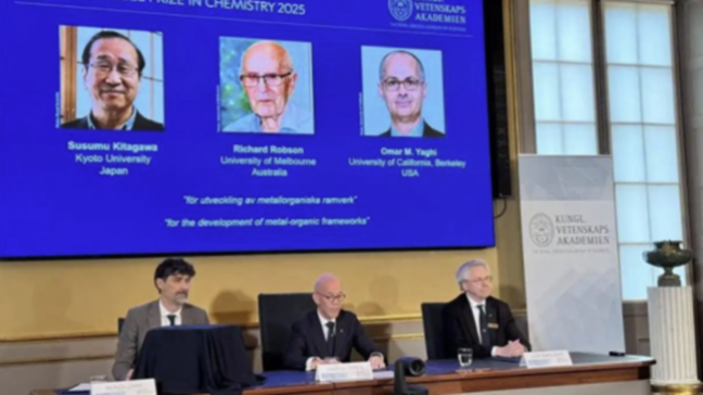 2025 年 10 月 8 日北京時間 17 時 45 分許,瑞典皇家科學院決定將 2025 年諾貝爾化學獎授予北川進(Susumu Kitagawa)、理查德·羅布森(Richard Robson)以及奧馬爾·M.亞吉(Omar M. Yaghi)三位科學家,以表彰其在金屬有機框架開發(fā)領域的貢獻。